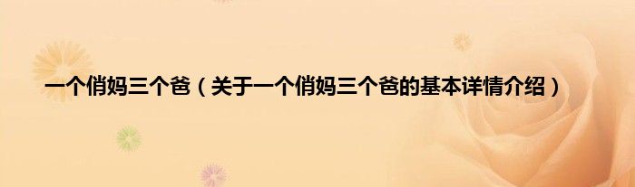 本文关于一个俏妈三个爸的基本详情介绍就讲解完毕,希望对大家有所帮助。
