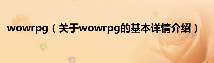 本文关于wowrpg的基本详情介绍就讲解完毕,希望对大家有所帮助。