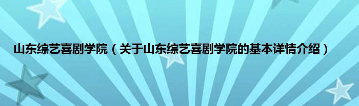 本文关于山东综艺喜剧学院的基本详情介绍就讲解完毕,希望对大家有所帮助。