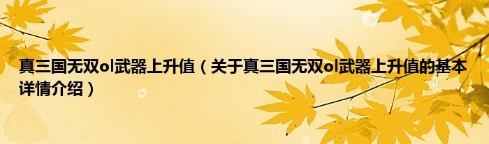 本文关于真三国无双ol武器上升值的基本详情介绍就讲解完毕,希望对大家有所帮助。