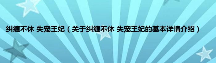 本文关于纠缠不休 失宠王妃的基本详情介绍就讲解完毕,希望对大家有所帮助。