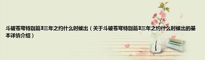 斗破苍穹特别篇3三年之约什么时候出(关于斗破苍穹特别篇3三年之约什么时候出的基本详情介绍)