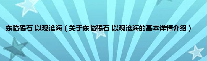 本文关于东临碣石 以观沧海的基本详情介绍就讲解完毕,希望对大家有所帮助。