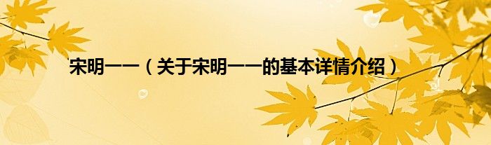 本文关于宋明一一的基本详情介绍就讲解完毕,希望对大家有所帮助。