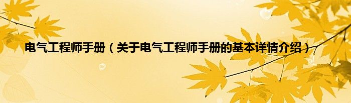 本文关于电气工程师手册的基本详情介绍就讲解完毕,希望对大家有所帮助。