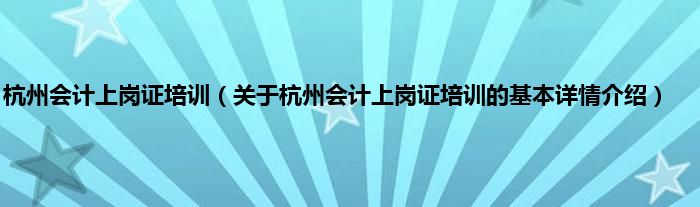 本文关于杭州会计上岗证培训的基本详情介绍就讲解完毕,希望对大家有所帮助。
