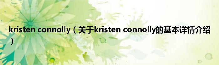 本文关于kristen connolly的基本详情介绍就讲解完毕,希望对大家有所帮助。