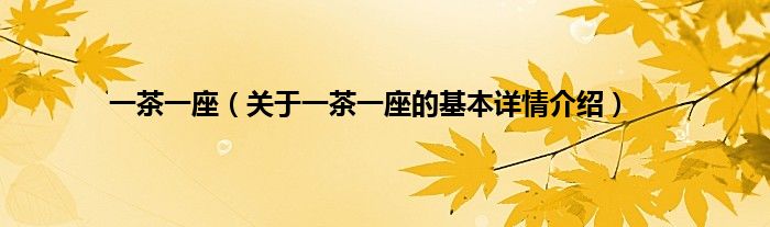 本文关于一茶一座的基本详情介绍就讲解完毕,希望对大家有所帮助。