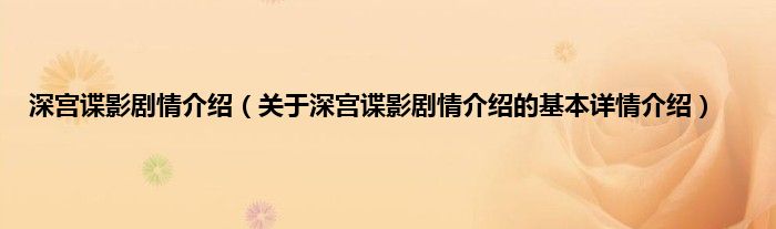 本文关于深宫谍影剧情介绍的基本详情介绍就讲解完毕,希望对大家有所帮助。