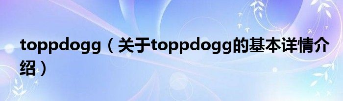 本文关于toppdogg的基本详情介绍就讲解完毕,希望对大家有所帮助。