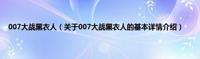 本文关于007大战黑衣人的基本详情介绍就讲解完毕,希望对大家有所帮助。