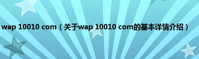 本文关于wap 10010 com的基本详情介绍就讲解完毕,希望对大家有所帮助。
