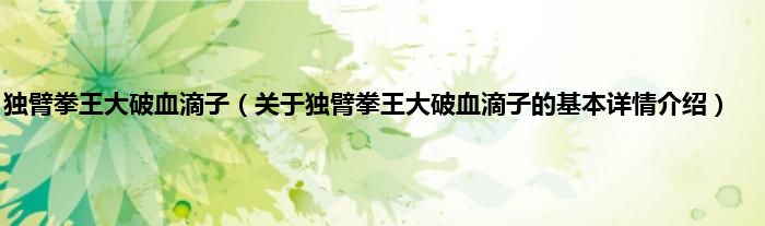本文关于独臂拳王大破血滴子的基本详情介绍就讲解完毕,希望对大家有所帮助。