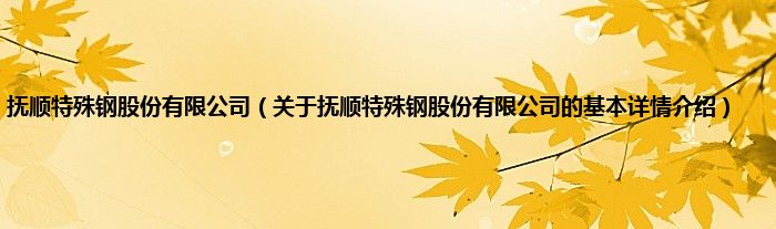 本文关于抚顺特殊钢股份有限公司的基本详情介绍就讲解完毕,希望对大家有所帮助。