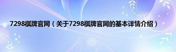 本文关于7298棋牌官网的基本详情介绍就讲解完毕,希望对大家有所帮助。