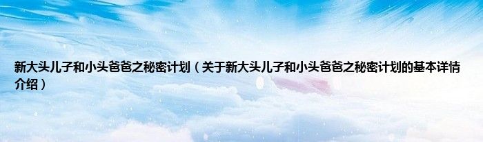 本文关于新大头儿子和小头爸爸之秘密计划的基本详情介绍就讲解完毕,希望对大家有所帮助。
