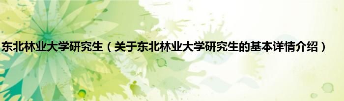 本文关于东北林业大学研究生的基本详情介绍就讲解完毕,希望对大家有所帮助。