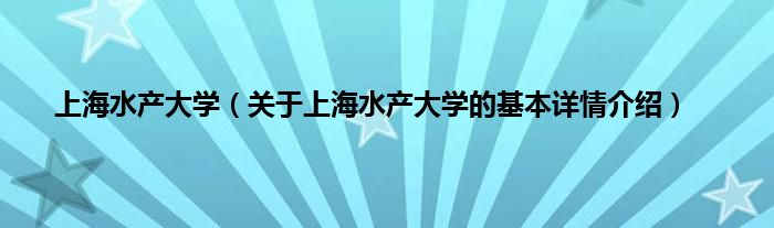 上海水产大学(关于上海水产大学的基本详情介绍)