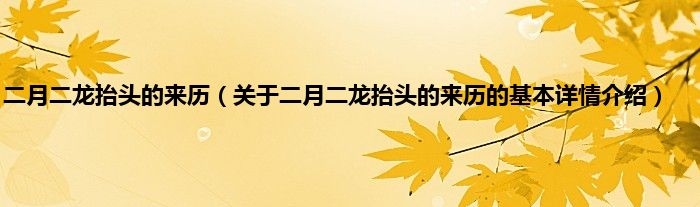 本文关于二月二龙抬头的来历的基本详情介绍就讲解完毕,希望对大家有所帮助。