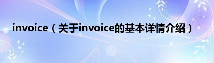 本文关于invoice的基本详情介绍就讲解完毕,希望对大家有所帮助。