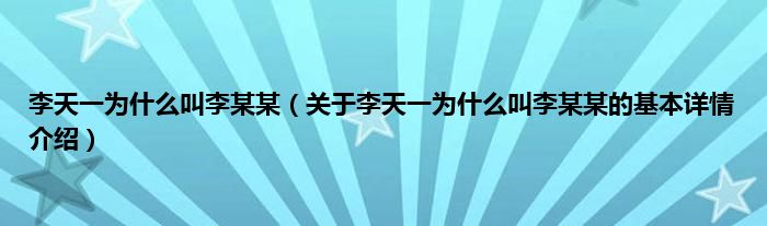 本文关于李天一为什么叫李某某的基本详情介绍就讲解完毕,希望对大家有所帮助。