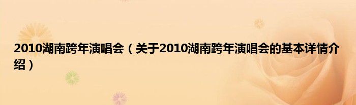 本文关于2010湖南跨年演唱会的基本详情介绍就讲解完毕,希望对大家有所帮助。