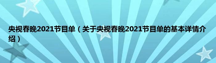 本文关于央视春晚2021节目单的基本详情介绍就讲解完毕,希望对大家有所帮助。