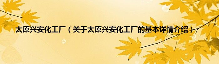 本文关于太原兴安化工厂的基本详情介绍就讲解完毕,希望对大家有所帮助。