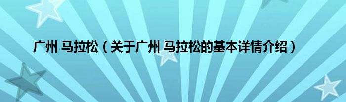 本文关于广州 马拉松的基本详情介绍就讲解完毕,希望对大家有所帮助。