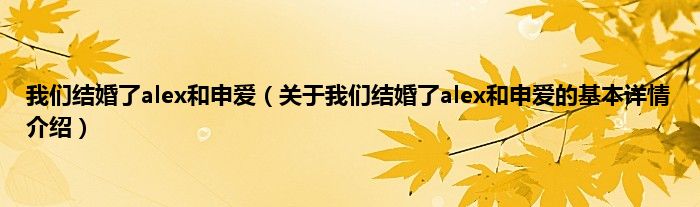 本文关于我们结婚了alex和申爱的基本详情介绍就讲解完毕,希望对大家有所帮助。