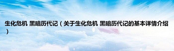 本文关于生化危机 黑暗历代记的基本详情介绍就讲解完毕,希望对大家有所帮助。