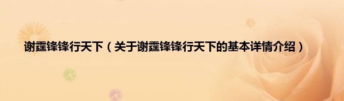 本文关于谢霆锋锋行天下的基本详情介绍就讲解完毕,希望对大家有所帮助。