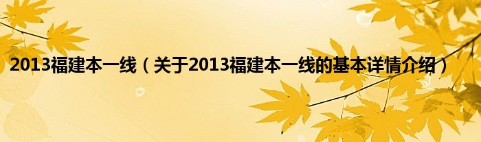 2013福建本一线(关于2013福建本一线的基本详情介绍)