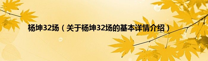 本文关于杨坤32场的基本详情介绍就讲解完毕,希望对大家有所帮助。
