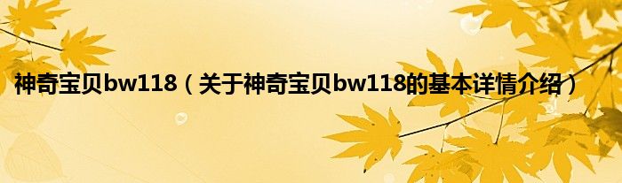 本文关于神奇宝贝bw118的基本详情介绍就讲解完毕,希望对大家有所帮助。