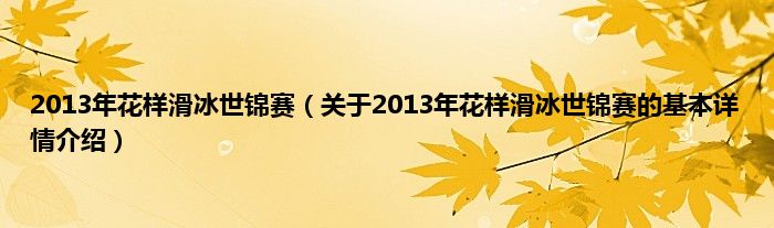 本文关于2013年花样滑冰世锦赛的基本详情介绍就讲解完毕,希望对大家有所帮助。