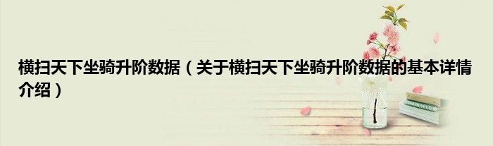 本文关于横扫天下坐骑升阶数据的基本详情介绍就讲解完毕,希望对大家有所帮助。
