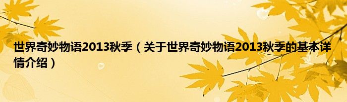 本文关于世界奇妙物语2013秋季的基本详情介绍就讲解完毕,希望对大家有所帮助。