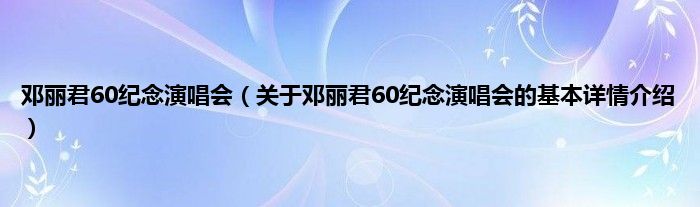 本文关于邓丽君60纪念演唱会的基本详情介绍就讲解完毕,希望对大家有所帮助。