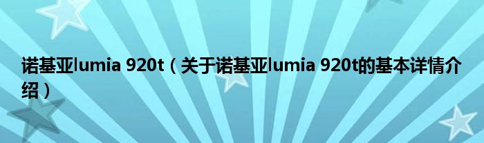 本文关于诺基亚lumia 920t的基本详情介绍就讲解完毕,希望对大家有所帮助。