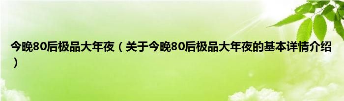 本文关于今晚80后极品大年夜的基本详情介绍就讲解完毕,希望对大家有所帮助。