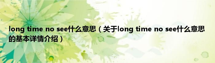 本文关于long time no see什么意思的基本详情介绍就讲解完毕,希望对大家有所帮助。