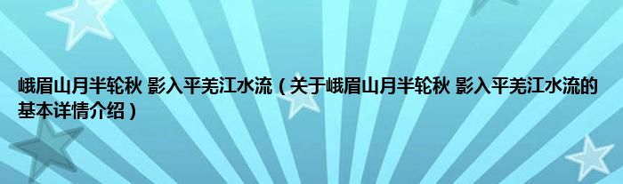 本文关于峨眉山月半轮秋 影入平羌江水流的基本详情介绍就讲解完毕,希望对大家有所帮助。