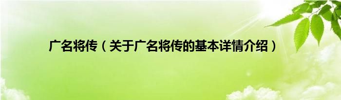 本文关于广名将传的基本详情介绍就讲解完毕,希望对大家有所帮助。
