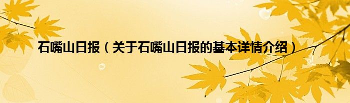 本文关于石嘴山日报的基本详情介绍就讲解完毕,希望对大家有所帮助。