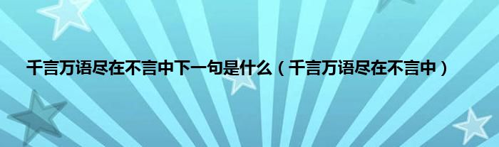 以上就是【千言万语尽在不言中下一句是什么,千言万语尽在不言中】相关内容。
