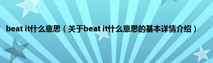 本文关于beat it什么意思的基本详情介绍就讲解完毕,希望对大家有所帮助。