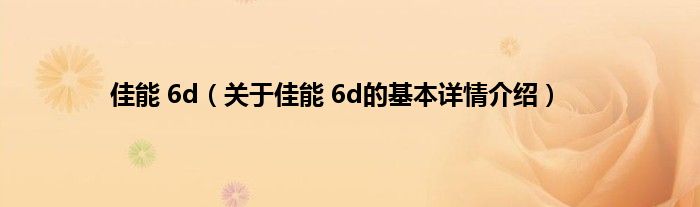 本文关于佳能 6d的基本详情介绍就讲解完毕,希望对大家有所帮助。