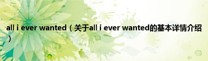 本文关于all i ever wanted的基本详情介绍就讲解完毕,希望对大家有所帮助。