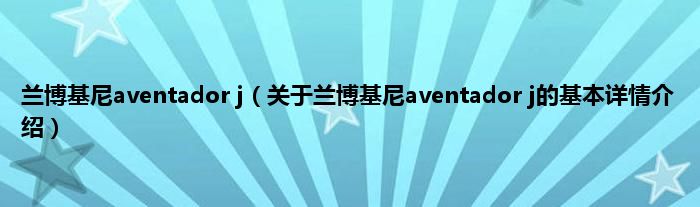 本文关于兰博基尼aventador j的基本详情介绍就讲解完毕,希望对大家有所帮助。